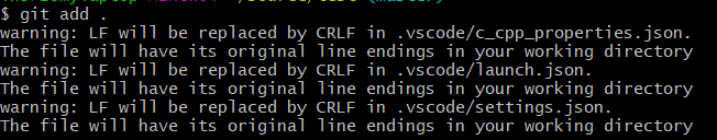warning: LF will be replaced by CRLF in .vscode/settings.json. The file will have its original line endings in your working directory