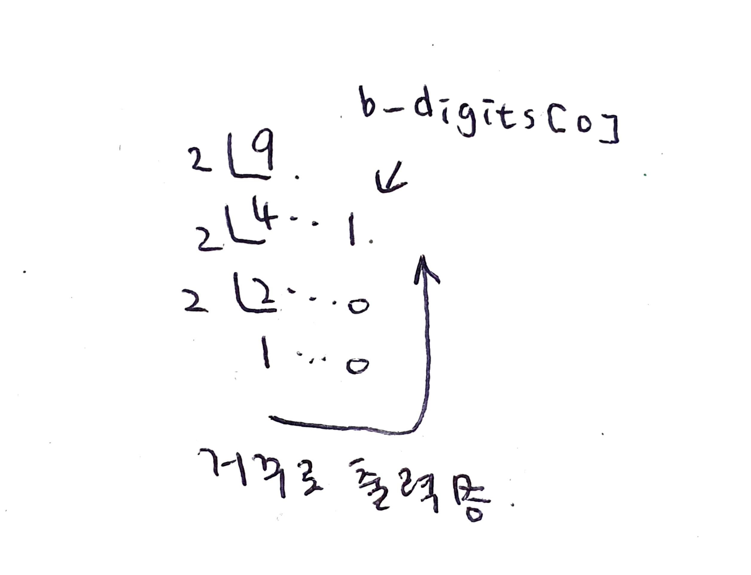 b_digits를 b로 나누면서 나머지를 배열에 저장한다.