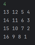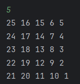 예를 들어 n이 짝수라면 마지막 줄(맨 왼쪽 줄)이 아래에서 위로 +1씩 증가하는 모양이다.