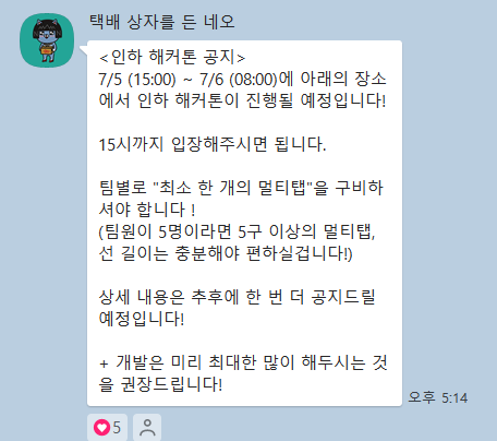 우리 팀은 개발 및 배포가 끝난 상태여서 솔직히 엄청 힘들진 않았다!