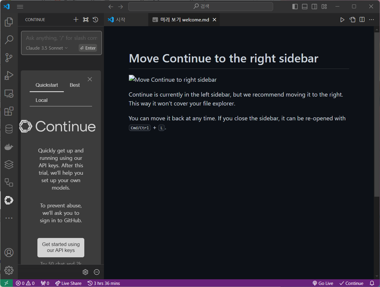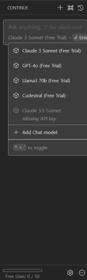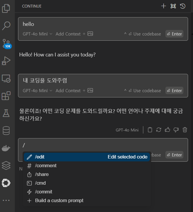 자 이제 Continue와 대화를 시도해보자..!!