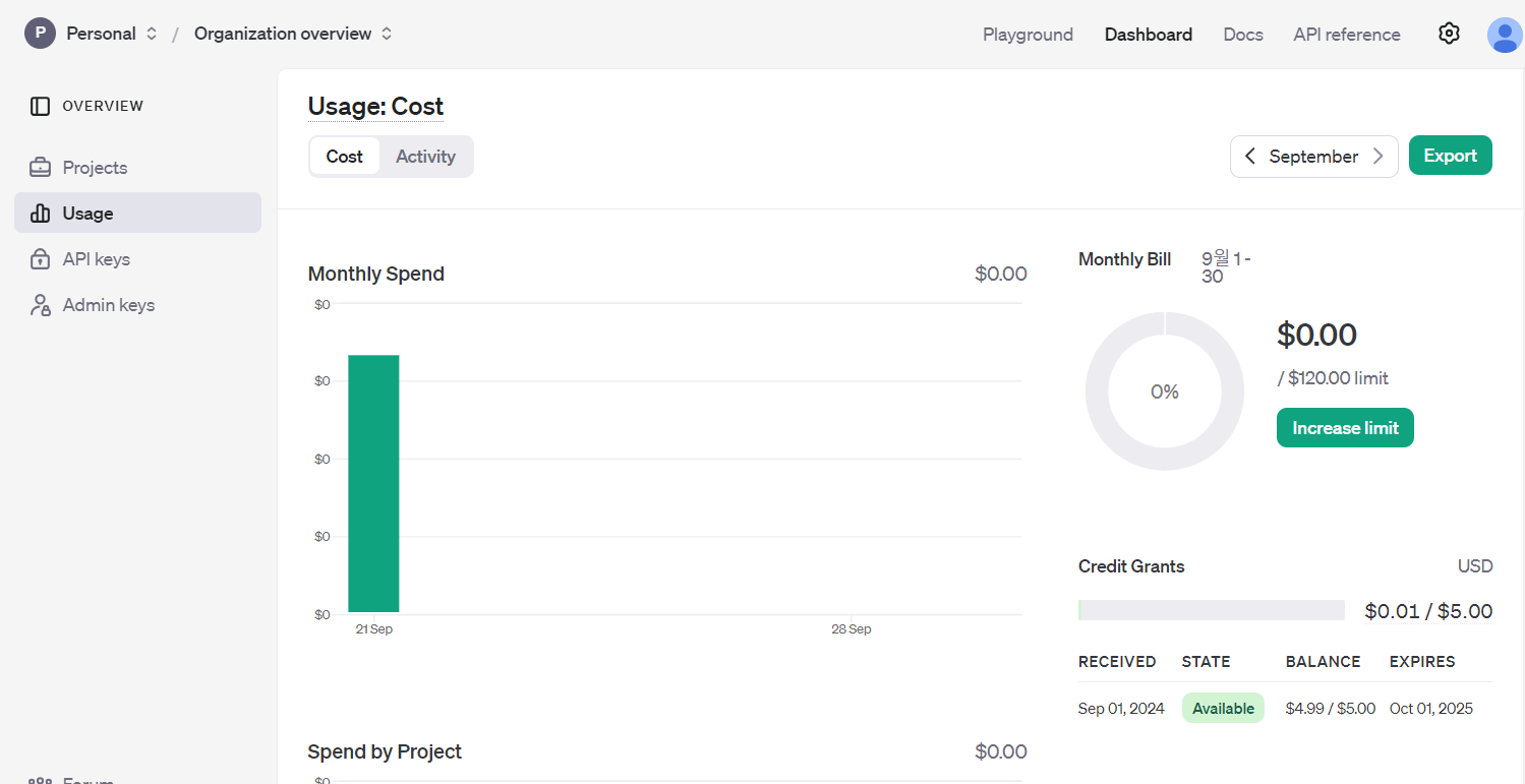 그리고 Dashboard > Usage에서 모델 사용량도 확인 가능하니 참고할 것!