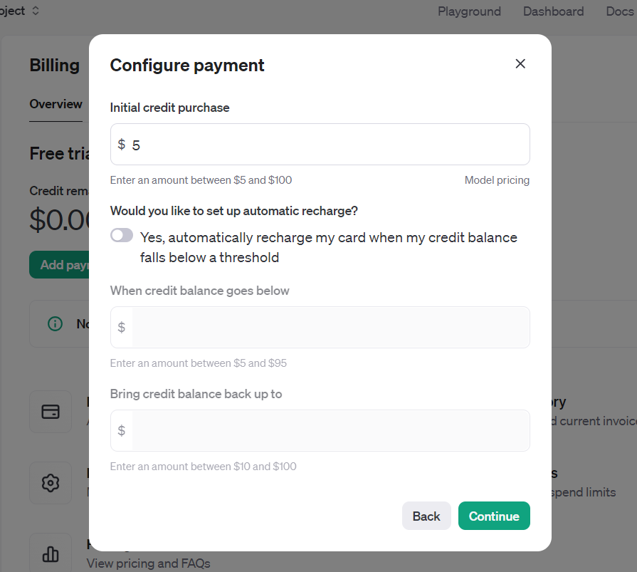 결제 수단이 성공적으로 등록되었으면 5달러가 설정된 것을 확인할 수 있다.