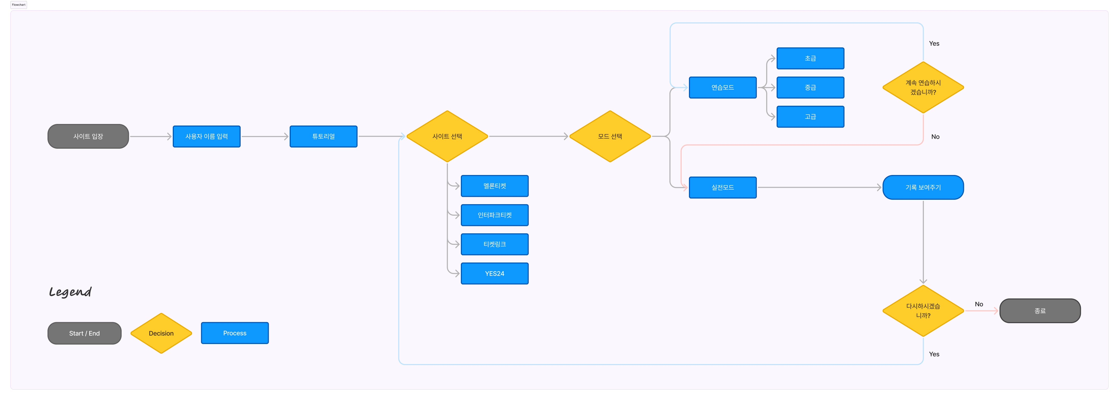 다양한 난이도(초급, 중급, 고급)에 맞춰 티켓팅 연습을 할 수 있는 모드입니다.