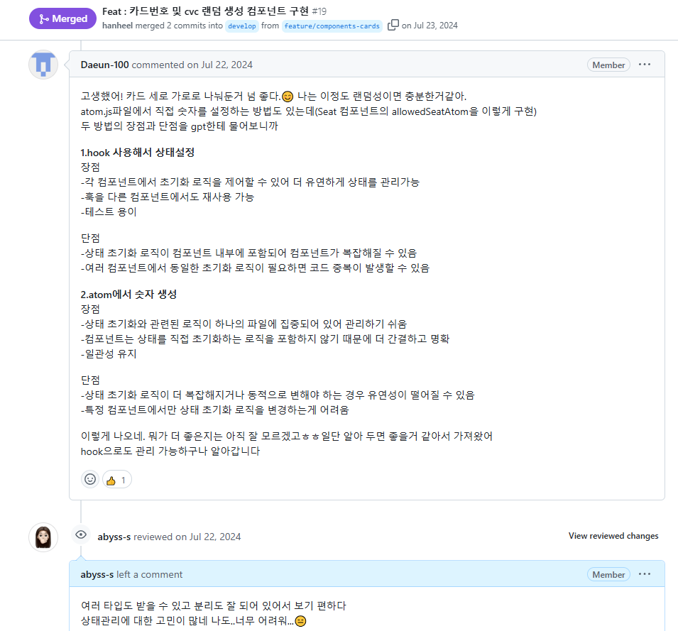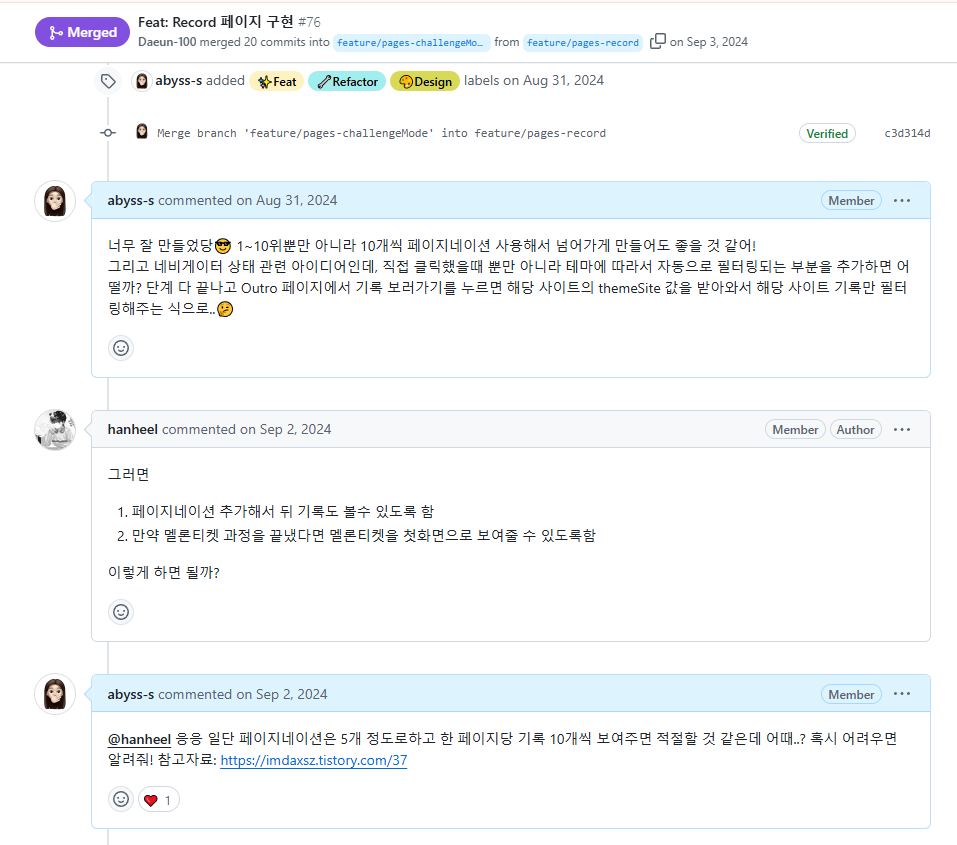 PR 코멘트에서 생산적인 피드백을 나누면서 함께 성장할 수 있었습니다!