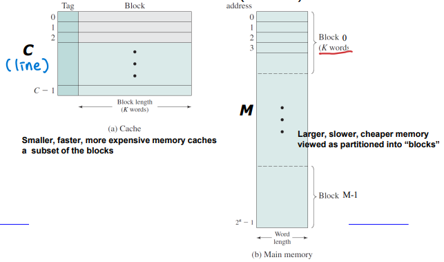 - 더 작은, 더 비싼 (비트당 비용이 높은), 더 빠른 메모리와