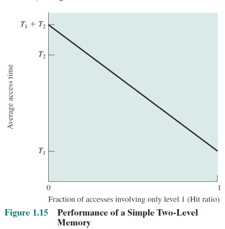 - 레벨 1 액세스 시간 = 0.1 μs, 레벨 2 액세스 시간 = 1 μs, 95%의 액세스가 레벨 1에서 발생한다고 가정. 바이트에 액세스하는 평균 시간?