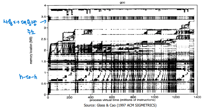 - 프로그램은 메모리의 상대적으로 작은 부분만을 자주 참조.