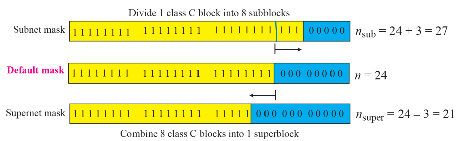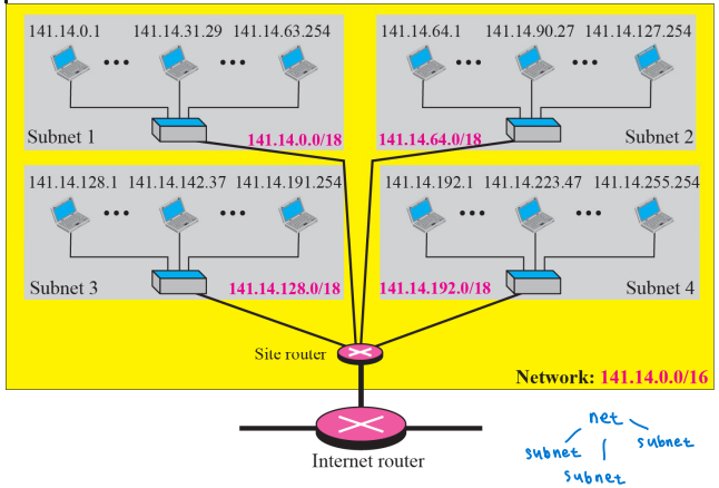 - subnetting 후, 각 단과대는 자체 하위 네트워크를 가지고 있지만, 여전히 전체 캠퍼스는 외부 인터넷을 위한 하나의 네트워크이다. ex) ㅇㅇ대 -> ㅇㅇ대 자연대, ㅇㅇ대 사범대, ㅇㅇ대 공대, ㅇㅇ대 경영대...
