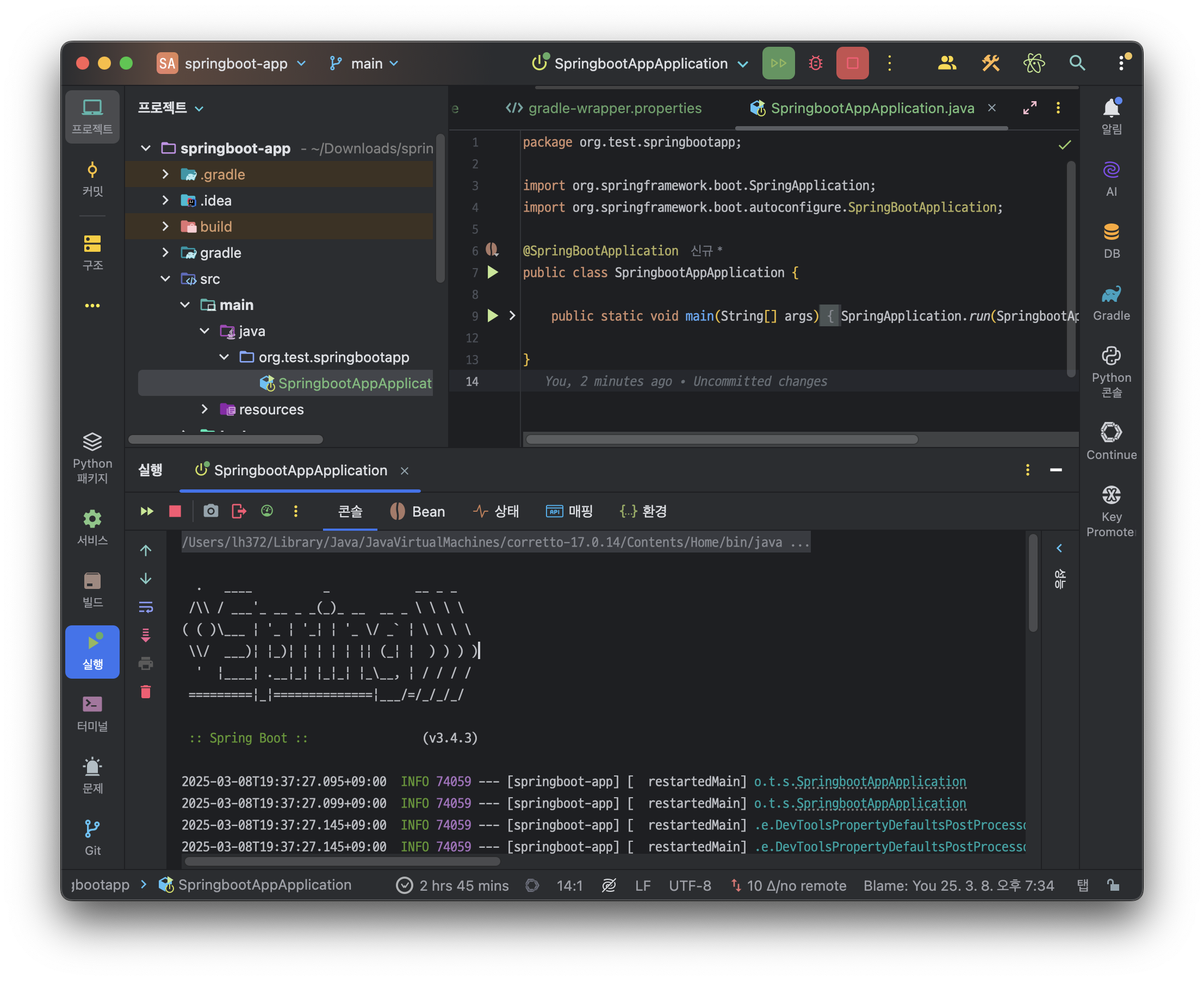 만약 실행 파일을 빌드한 후 실행하려면 ./gradlew build로 빌드하고, 그 후에 java -jar 명령어로 실행해야 합니다.