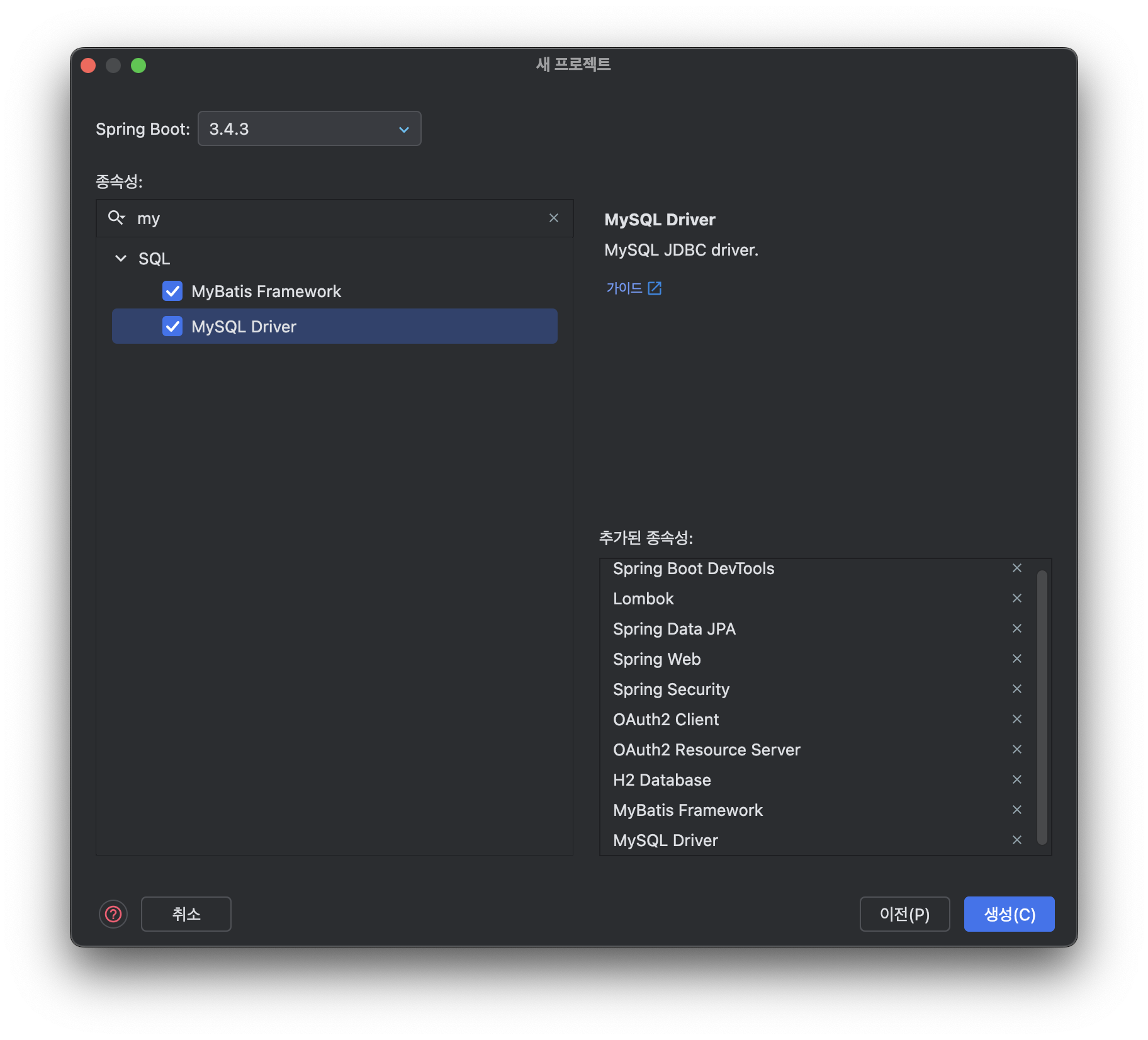 - 빌드 관리 도구: Gradle - Groovy (또는 Maven)
