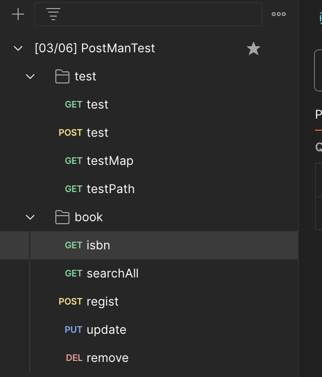 이런식으로 New Request를 통해 새 요청을 만들고 isbn으로 설정합니다.