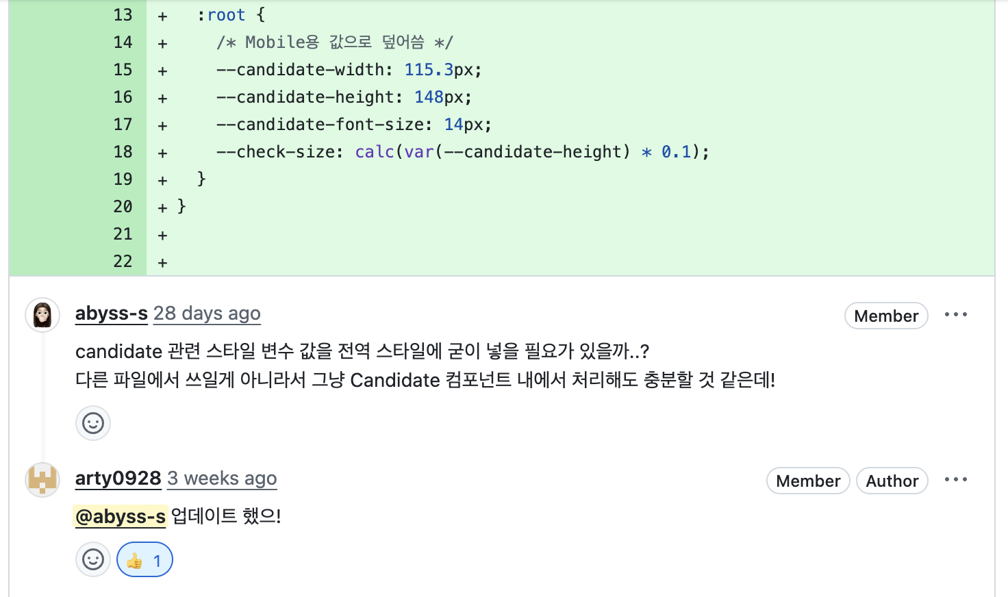 유지보수가 훨씬 쉬워졌고, 디자인 리소스 변경이 생겨도 일괄 적용이 가능해졌습니다.