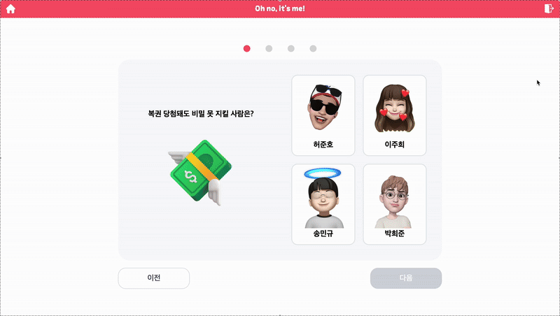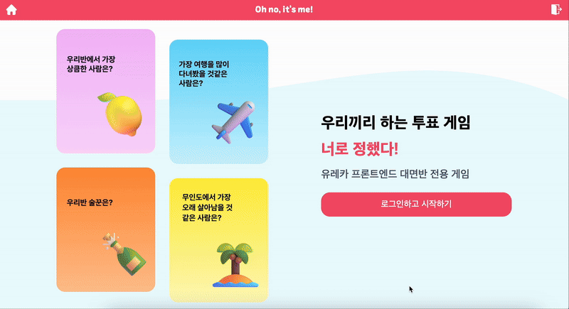 그래서 단순한 투표가 아닌 밸런스 게임 형식을 통해 선택의 재미와 고민을 나눌 수 있는, 실제로 활용 가능한 소셜 플랫폼을 만들고자 했습니다. 서비스 타겟은 저희 프론트엔드 대면반 사람들이었는데요. 교육과정 중 지친 일상 속에서 ‘무인도에서 누가 가장 잘 살아남을까?’ 같은 가볍고 유쾌한 질문을 통해, 구성원들이 매일 소통하고 웃을 수 있는 공간을 만들고 싶었습니다!