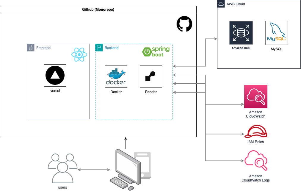 Docker를 이용한 백엔드 컨테이너화, AWS RDS 세팅, Render/Vercel 배포 자동화까지 처음부터 끝까지 직접 구축해보았는데 상당히 힘들었습니다.