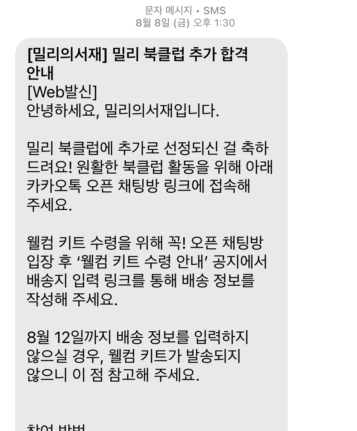 바로 밀리 북클럽 1기 참새로 선정되었다는 소식! 🐦✨
