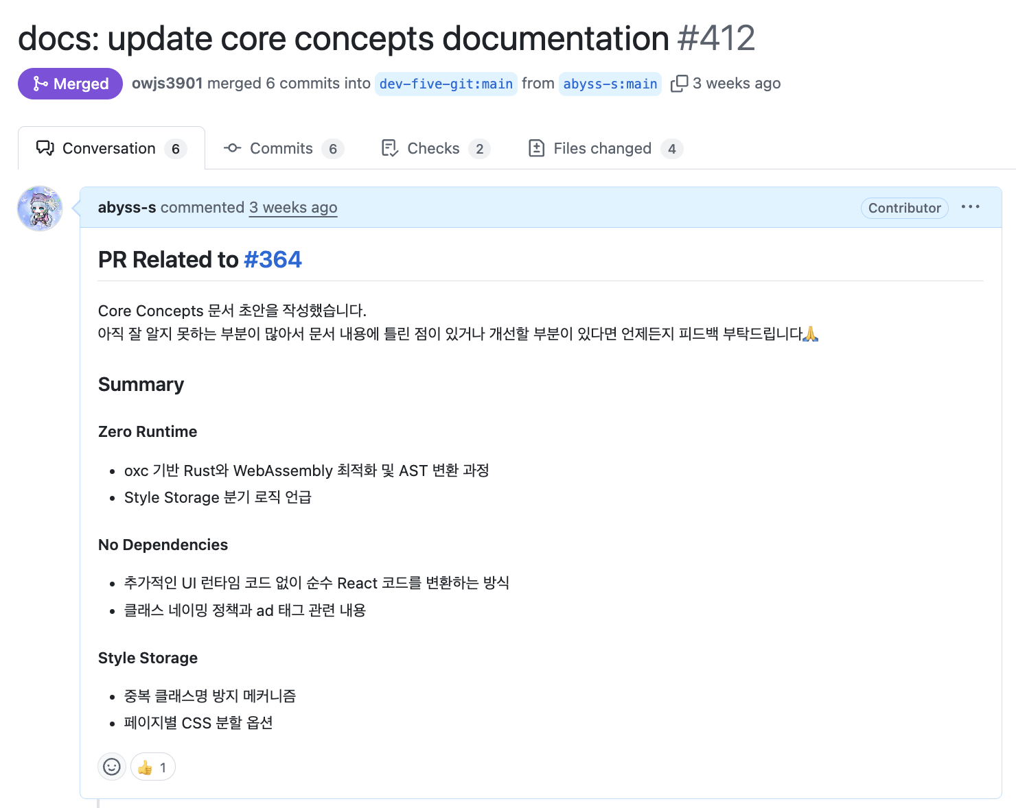 첫 번째 PR에서는 Zero Runtime 프로세스 전반을 문서화했고,