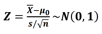 검정통계량(test statistic): 가설검정에 이용되는 통계량
