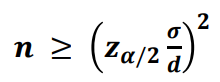 모평균에 대한 추정에서 오차가 𝒅 이하일 확률이 최소 𝟏 − 𝜶 를 만족하는 최소의 표본 크기