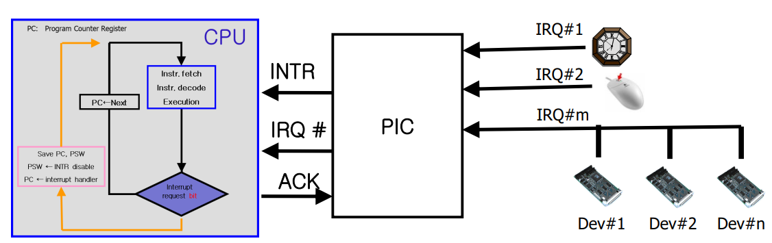 - PIC는 장치의 요청을 IRQ 번호로 변환하고 이를 CPU에 전달합니다.