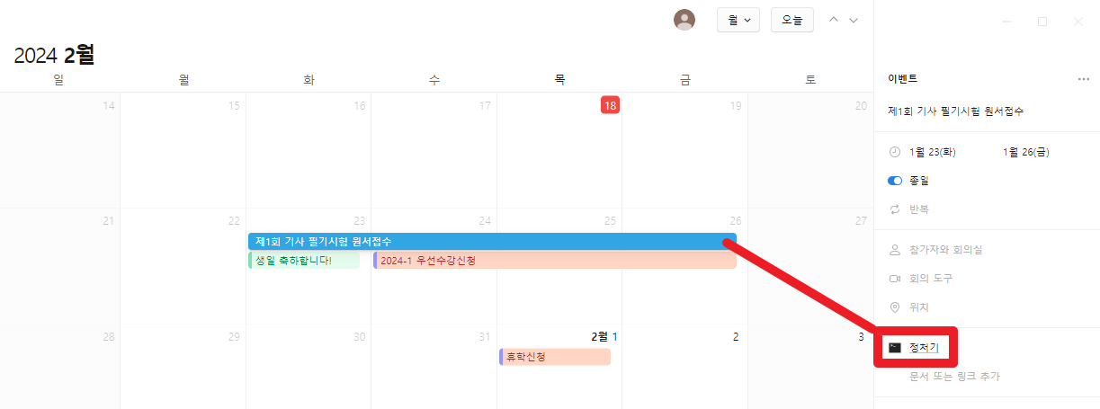 나 같은 경우 다음주에 있는 기사 시험 접수 일정을 등록하고,
